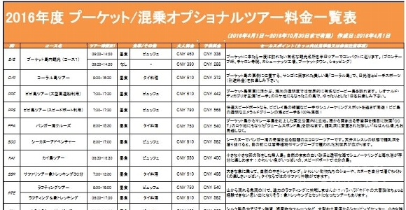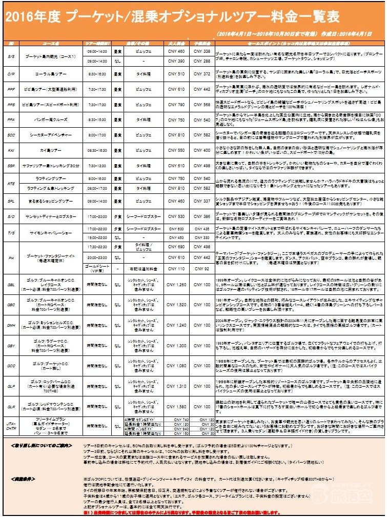 | 1日目 | プーケット | CA797 1900 北京T3→2340 プーケット または
