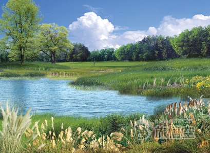 ゴルフ場の面積は2800亩、西に広がる北京郊外の山々の景観に恵まれています。