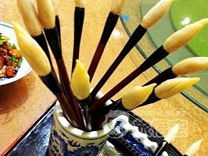 基本は個室へ通され、専属のサービススタッフがつきっきりで世話をしてくれます。 前菜から始まり、デザートまで10種類以上の料理は、日本料理や西洋料理、他の地方の中華料理の影響も感じさせながらも、辛いだけでない古来の四川料理を楽しませてくれる創作中華で、中華料理の奥深さが味わえると評判です。 筆のように見えるが、先がパイ生地っぽくなっていて、ソースにつけて食べる料理など目も楽しませてくれるため、予算に余裕があれば是非訪れてみてください。 |