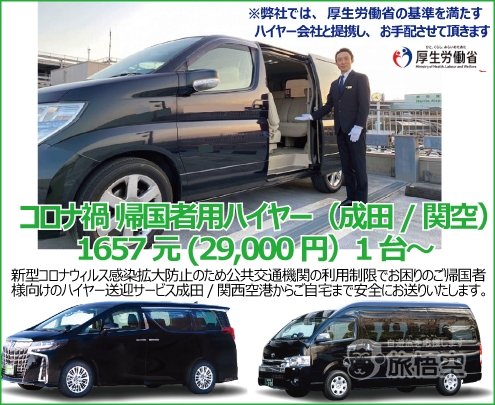 帰国者用ハイヤー(成田/関空)1657元(29,000円)1台~