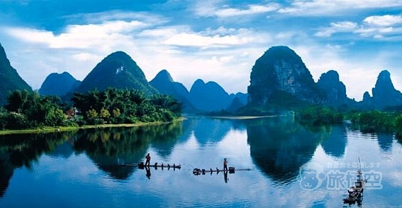 「漓江と桃花江は青い絹の帯のよう、そびえる山々は碧玉のかんざしの様」を満喫してください。