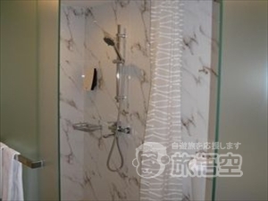 部屋はシンプルだが機能的で使いやすいつくり。バスルームに、バスタブはなく、シャワーブースとトイレは分かれています。テレビ、ポット、電話など、必要なものはすべて壁に備え付けられたコンパクトタイプ。ベッドの下に、トランクや荷物を入れる空間と、貴重品を入れるセイフティーボックスがあります。