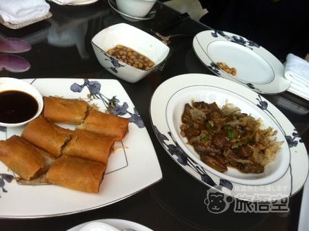 春巻き、日式茄子の炒め物(オイスターソース炒めの茄子は、マーボー茄子似)、