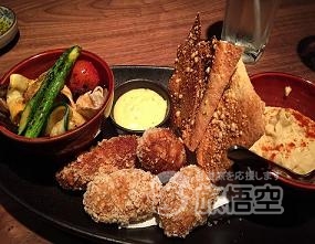 前菜に ~グリル野菜バルサミコマリネ・鴨&ポテトのコロッケッタ・ハムス~