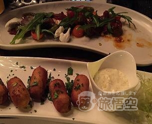 前菜にピッタリ。サービスのパンと供にサーブされるオリーブオイルも美味! ~トマト&モッツアレラ&チョリソのサラダ~は、色とりどりのトマトで見た目も◎ ~チキン・クロッケッタ~はタパスの定番。小ぶりのコロッケはクリーミーでさくさく。 ~ロブスター・パエリア~は、お店一押しのパエリア。大きなロブスターの出汁が効いていて満足! 臭みがなく、身まで全部美味しく食べられます。 店員さんと、ワインと一緒にお料理を選ぶのも楽しみです。 デートに、女子会に、ニ次会におススメです。 ※2階にテラス席あり。 |