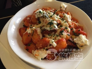 〜グリーンピーススープ〜は春らしい色鮮やかなグリーン。濃厚でグリーンピースをたっぷり堪能できるスープ。カリカリベーコンとの相性も◎ メインの〜ローストポーク カリフラワーピュレー添〜は人気メニューだそう。スローローストされたヒレ肉。クリーミーなカリフラワーも美味。〜パンプキンニョッキ〜はかぼちゃの甘みとたっぷりのチーズのニョッキ。フェタチーズとモッツァレラの2種類チーズでボリュームあり! デザートの〜レモンパブロバ〜は甘酢っぱくてお食事最後の〆にピッタリ。