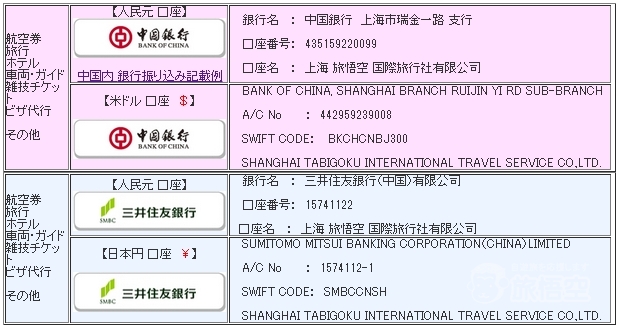 予約確認書に記載の期限内に、確認書記載の下記口座にお振込頂き、振込み後弊社までご連絡下さい。