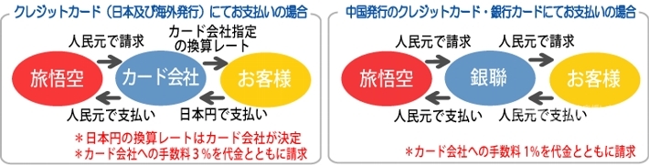 ①現金 または銀聯カード (上海&北京市内のみ対応可)