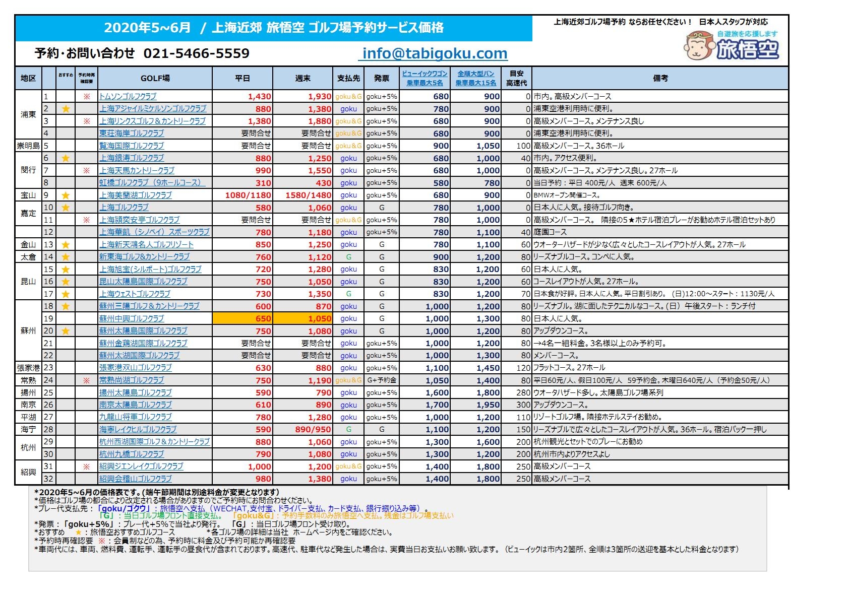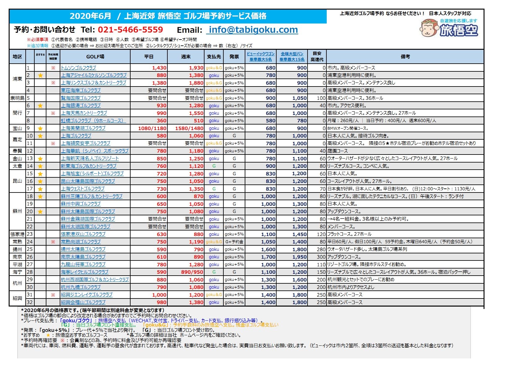 2022年 / 上海近郊 旅悟空 ゴルフ場予約サービス価格